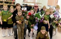 7 мая с самого утра детей и родителей дошкольное учреждение "Сказка" встречала песнями победного мая. Детвора спешила на праздник с цветами и хорошим настроением. Их ждала встреча с ветеранами.