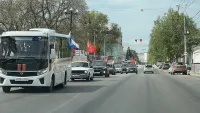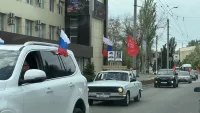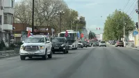Керчане колонной с флагами проехали по Керчи в честь Дня Победы