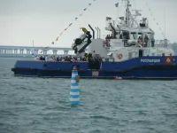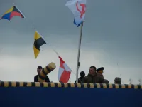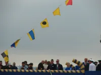 Венки и цветы спустили на воду рядом с буем.
