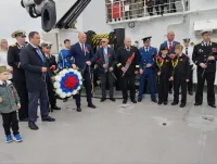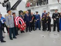 Дань памяти морякам, погибшим в боях за Керчь, по традиции отдается морю возложением венков и цветов на воду.