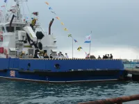 Сегодня, в день 80-летия Победы советского народа над фашистской Германией, от морского вокзала Керчи отошел корабль.