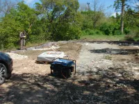 Весь снятый слой старого асфальта с центральных аллей собрали в огромную кучу и приготовили к вывозу.