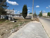 Параллельно продолжается установка бордюров, укладка плиточного покрытия и подготовка дальнейшего основания для мощения тротуаров.