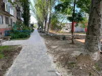 На объекте подрядная организация реализует проект, которым запланирована укладка тротуарной плитки, монтаж новой системы освещения, установка лавочек.