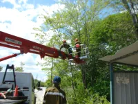 Сегодня от них освобождали деревья, растущие вдоль дороги по улице Комарова.