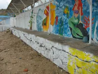 И стены, и парапеты побелили к летнему сезону. Студенты политехнического техникума украсили их тематическими граффити.