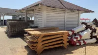 В Керчи преображается городской пляж к курортному сезону. На пляже приводят в порядок торговые павильоны и кафе. Все отмывают от грязи и пыли. Стоит отметить, что в этом году пляжную зону украсят новые зонтики и лежаки, - передает КерчьФМ.