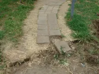 Благоустройство аллеи, ведущей к школе №26 в районе Промбазы, а точнее супермаркета "Яблоко", идет крайне медленно.