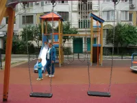 На новой площадке есть теперь качели, качалки-балансир и качалка на пружине, карусель-вертушка, песочница и игровой комплекс с горкой.