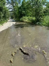 Сегодня ярким солнечным утром первого дня лета настроение жильцов МКД района Шоссе Героев Сталинграда, № 44 А вновь испортила зловонная река.