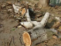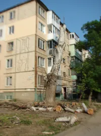 Возле дома № 5 и № 7 по улице Всесоюзной такие деревья были спилены, передает КерчьФМ.