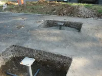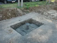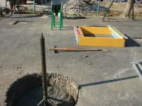 Рядом идет заливка фундамента под установку спортивных тренажеров.