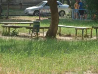 Старенькие прогнившие лавочки, сломанная каруселька- вертушка - вот и все элементы благоустройства.