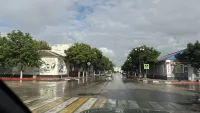 Дороги для проезда машин чистые, только в некоторых местах есть лужи. Вода быстро стекла с проезжей части. А вот пешеходам придется сегодня искать места как перейти дорогу не намочив ноги.