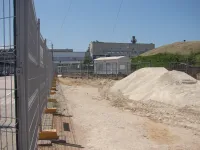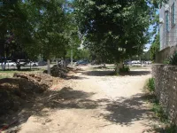 Параллельно строители устанавливают бордюры, а также выполняют подготовку к монтажу систем видеонаблюдения и наружного освещения.