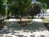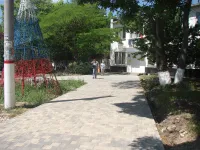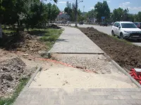 Завершено мощение плиточного покрытия вдоль фасада КРЭС и боковых подходов к зданию.