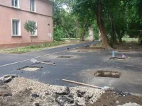 Сделаны хорошие подходы к подъездам и внутриквартальный проезд, обустроены парковки, сделаны площадки под спортивные тренажеры и сушку белья. Рабочим подрядной организации "Архонт" предстоит расчистить от строительного мусора газоны и привести их в порядок.