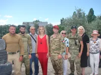 Ведущая мероприятия, председатель регионального благотворительного фонда "Спасибо маме за жизнь" Татьяна Кобылянская провела диалог с "Джокером" под инсценировку боевых действий в борьбе с врагом. Перестрелка, дым из полуразрушенного здания, штурм.