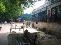 Справа от кафе "Морозко" работы в самом разгаре, передает КерчьФМ.