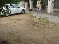 У здания с вывеской "Керченский технико-экономический колледж" по Мирошника, 26 автомобили паркуют на газон, которого давно нет.