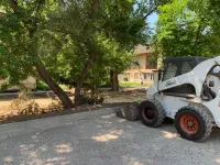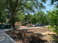 Спилены старые деревья, расширены проезды, организованы парковки для автомобилей.