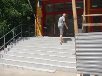 Ремонт разрушающихся ступеней у центрального входа в супермаркет "4-М" был начат где-то полгода назад.
