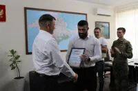 В администрации Ленинского района состоялась встреча руководства с группой бойцов по борьбе с подводными диверсионными силами и средствами, участниками мероприятия-реконструкции ко Дню ветерана Боевых действий «Диалог с героем» и главным его героем - "Джокером".