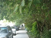Разросшиеся деревья вдоль тротуара по Сморжевского, 1 беспокоят местных жителей.