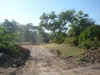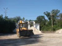По уже освобожденным участкам прокладываются пешеходные дорожки с бордюрами.