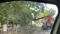 Коммунальщики сегодня приводят в порядок городские улицы. Так, на улице Пошивальникова, около Комсомольского парка, пилят ветки деревьев.