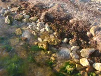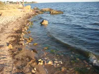Вчера была волна, и их местами прибило к берегу.