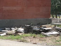 Накануне, сверху, с 4-этажного дома вниз летели куски материалов различной текстуры.