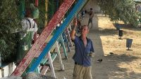 Специалисты Службы городского хозяйства обновляют металлические конструкции под теневыми навесами. Опоры частично зачистили от старой краски и ржавчины, покрыли новой эмалью. Работы займут несколько дней, в планах покрасить и сами скамейки.