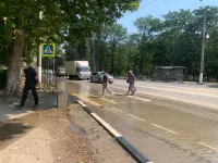 Переходящие дорогу пешеходы перепрыгивали через поток, передает КерчьФМ.