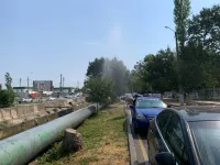 Сегодня утром у поликлиники №1 произошел очередной порыв трубопровода.