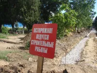 На центральной аллее укладку бордюров начали от школы и дошли уже до Спортивной школы олимпийского резерва по художественной гимнастике.