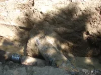 Как выяснилось, порыв произошел на старой трубе водовода, которая пролегает под новой, недавно установленной.