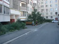 Первое - это качество асфальтирования. По словам жильцов, в местах занижения пешеходных дорожек и у одного из подъездов регулярно образуются лужи. Кроме того, необходимо заменить повреждённые бордюры вдоль тротуара с торца дома №14, собрать и вывезти весь строительный мусор и камни с клумб и газонов.