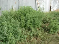 Вдоль тропинок и тротуара к их дому от остановки "23 школа" растет амброзия.