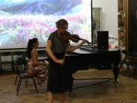 Прежде чем гостям выставки были представлены шедевры золотых рук автора, они смогли оценить ее виртуозное мастерство игры на рояле. Музыкальные композиции были исполнены на фоне фотографий не менее изумительных крымских пейзажей.