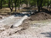 Продолжается и прокладка коммуникаций под освещение и полив.