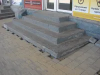 На пассажирской платформе общественного транспорта у автовокзала тротуарная плитка обновлена более чем на 2/3.