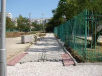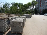 На аллее к школе № 26 в Керчи начали укладывать тротуарную плитку