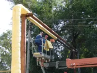 Трубы отопления, находящиеся на изрядной высоте, изолируют при помощи вышки.