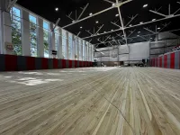 - В большом спортивном зале обновлен потолок, осветительные приборы, уложены новые деревянные полы, отремонтирована трибуна.