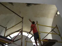 Строители ведут их сегодня внутри помещения под самым куполом.