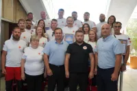 "С 12 августа на 164-м км трассы «Таврида» работал мобильный лагерь: федеральная группа из более чем 20 человек вместе с добровольцами Керченского отделения. Развернули четыре каркасных модуля, в том числе комнату матери и ребёнка. На трассе были организованы два пункта выдачи воды, в 4 и в 7 километрах от пункта досмотра.