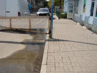 У самого шлагбаума, ограничивающего проезд к торговым бутикам вдоль городской речки, 4 месяца назад произошел порыв водовода.