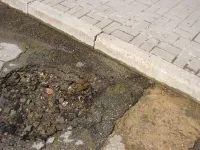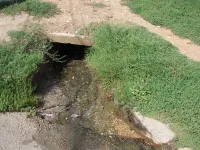 Но, ситуация не меняется. Вода бежит из-под бордюра рядом с канализационным колодцем, скапливается немного на повороте с улицы Борзенко на улицу Пролетарскую и "благополучно" стекает в речку.