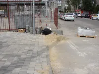 Небольшой отрезок был оставлен без плитки и причинял прохожим немало неудобств.